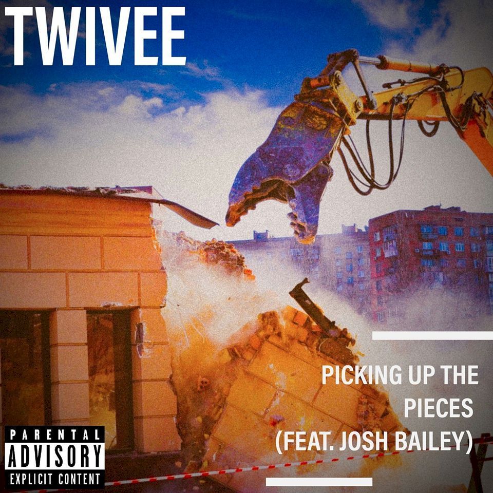 Thus, with TWIVEE’s new track“Picking up the Pieces” [feat. singer-songwriter Josh Bailey] he begins with a jarring, discordant guitar-sound before the consecrated voice ascends like the beau idéal. The rap has fierce fervor, whip cracking speed and effervescent ability and the lyrics don’t give away lost shots… each utterance hits the target: straight to the heart.